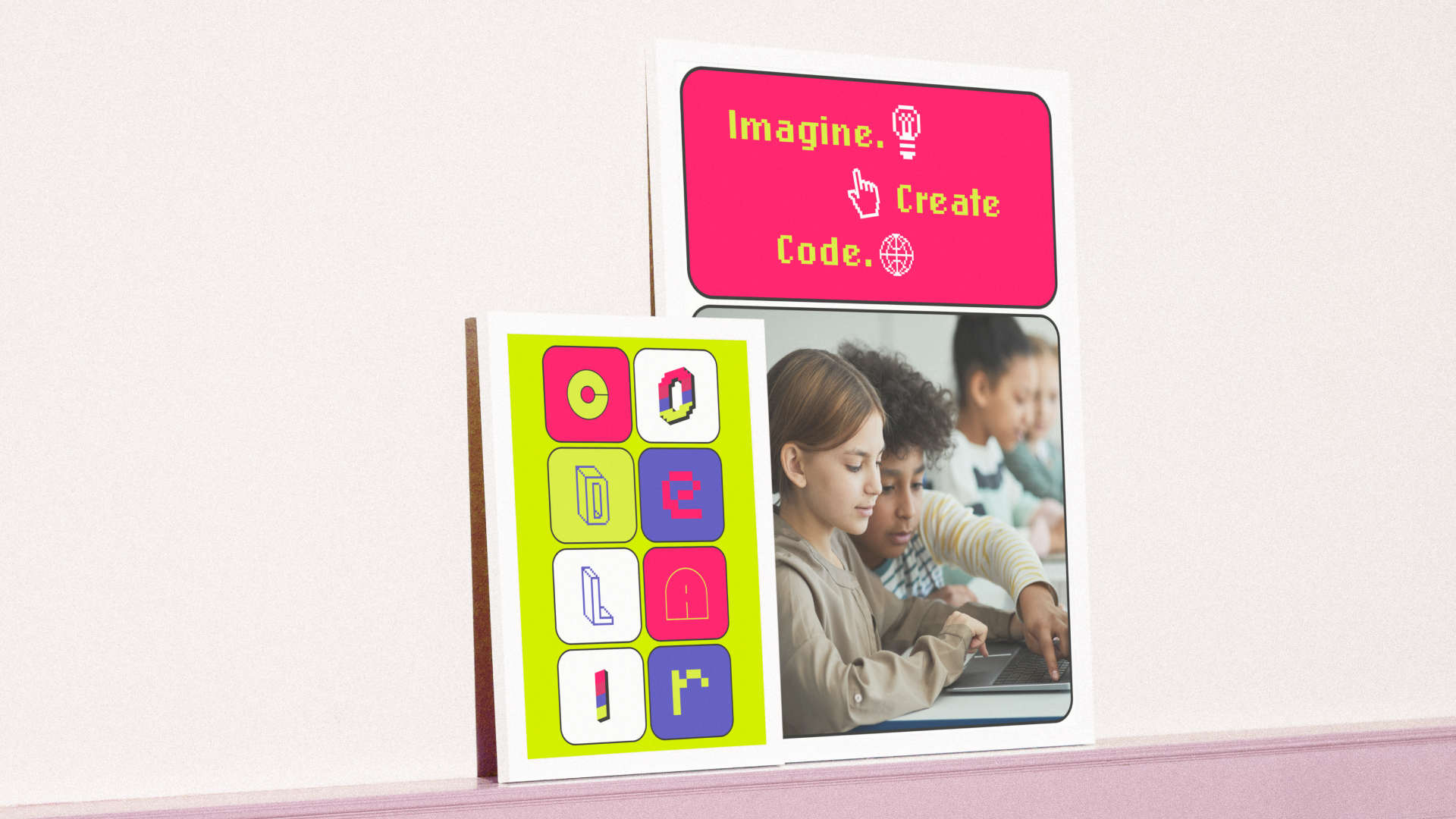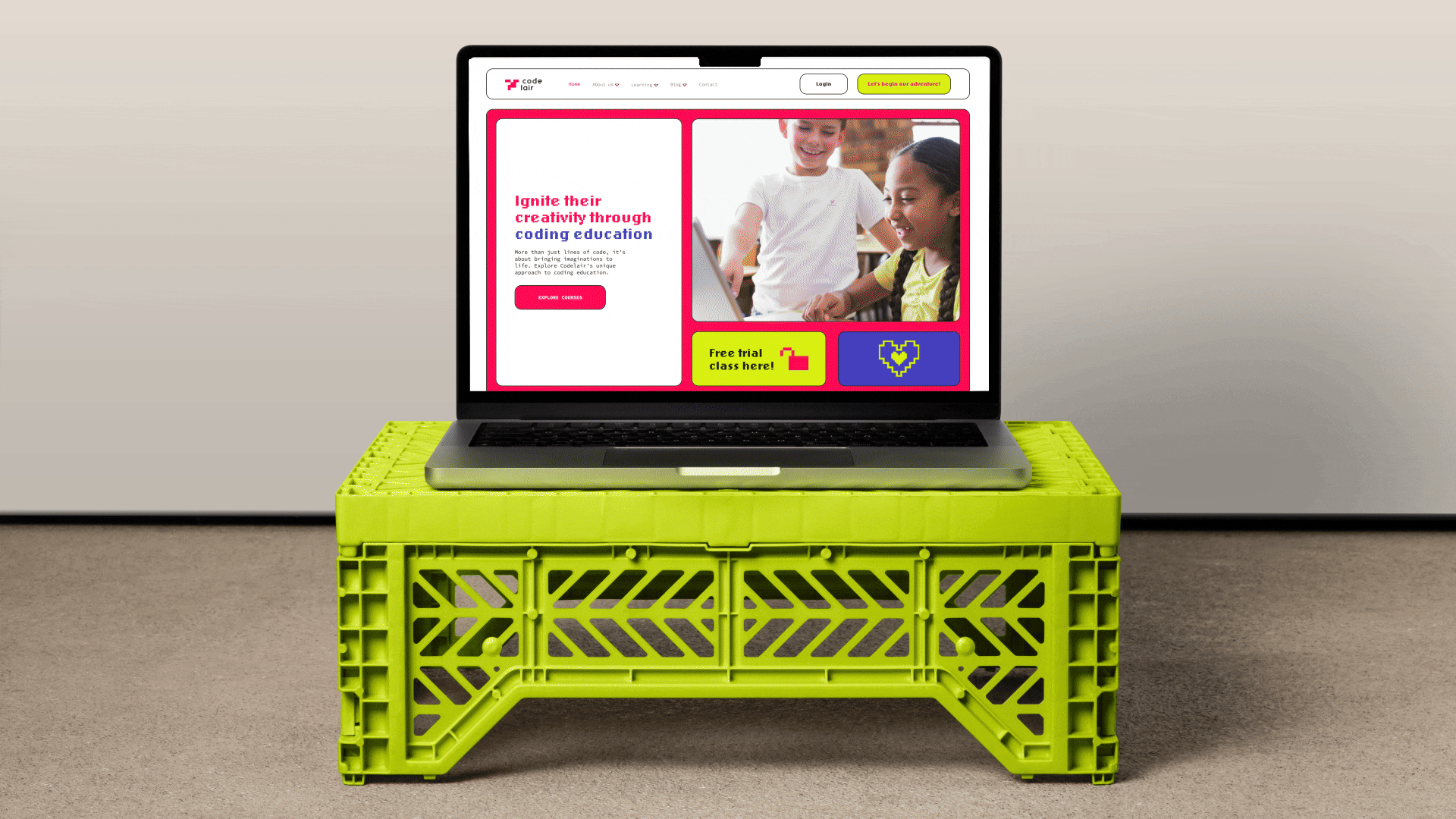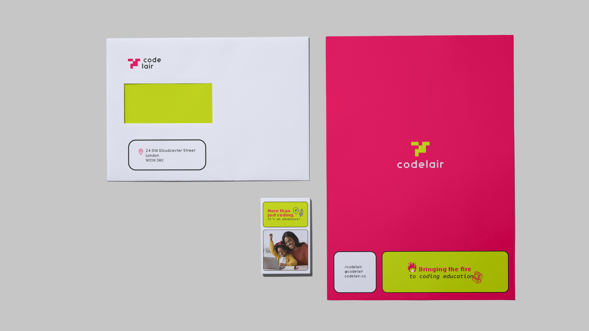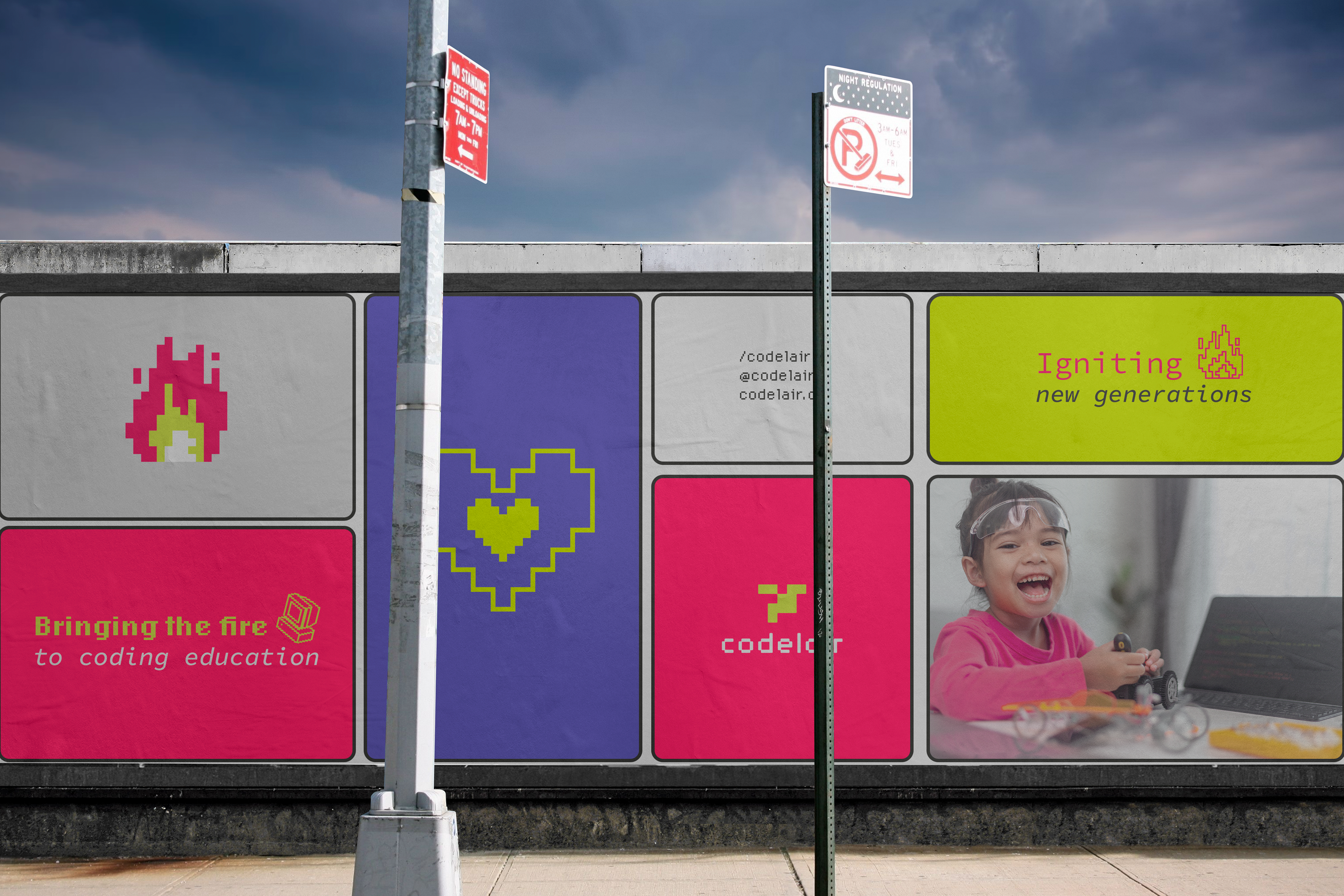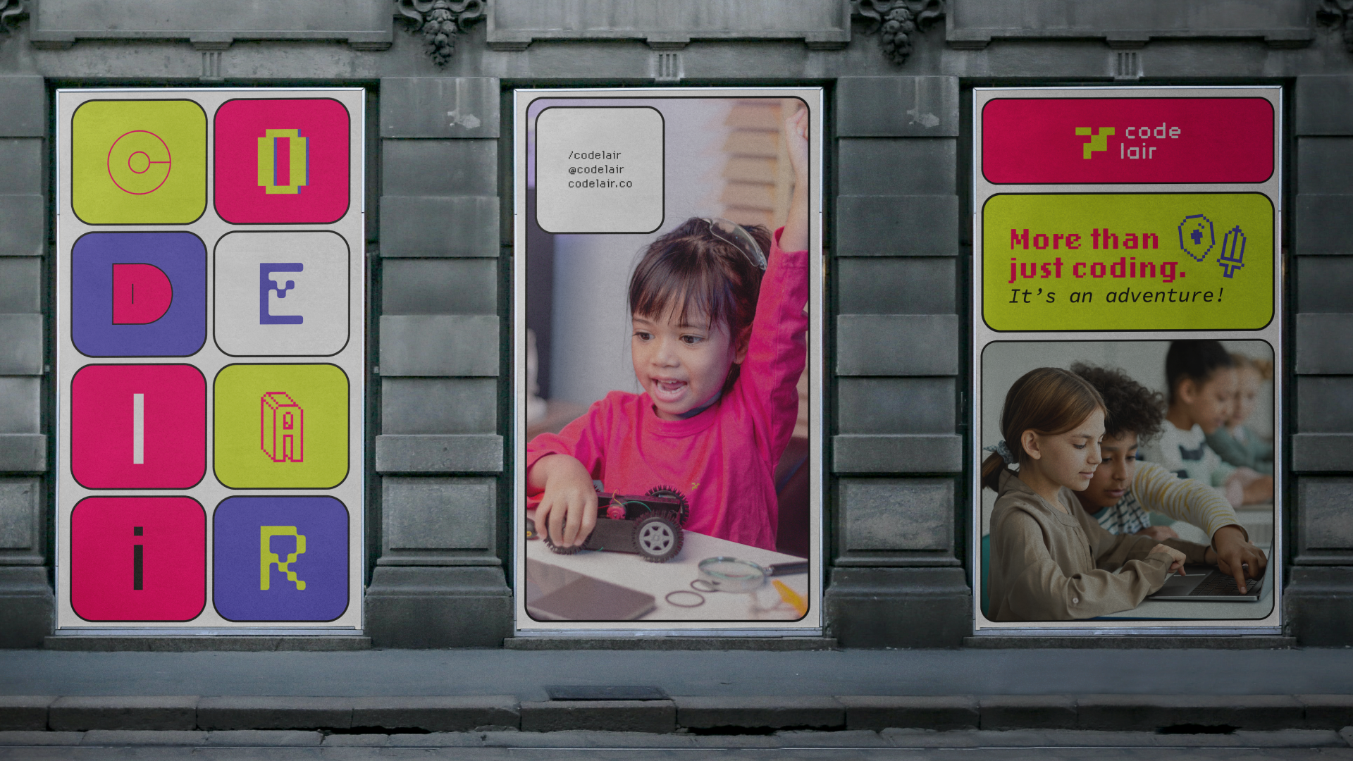 Eric então me trouxe e confiou a mim a missão de traduzir essa visão em uma marca única. Assim nasceu o design pixelado e estruturado da Codelair, uma estética que evoca nostalgia, inspirada pelos jogos clássicos de pixel art e que ainda facilita a leitura e a compreensão, convidando cada criança a mergulhar em um universo de descobertas.